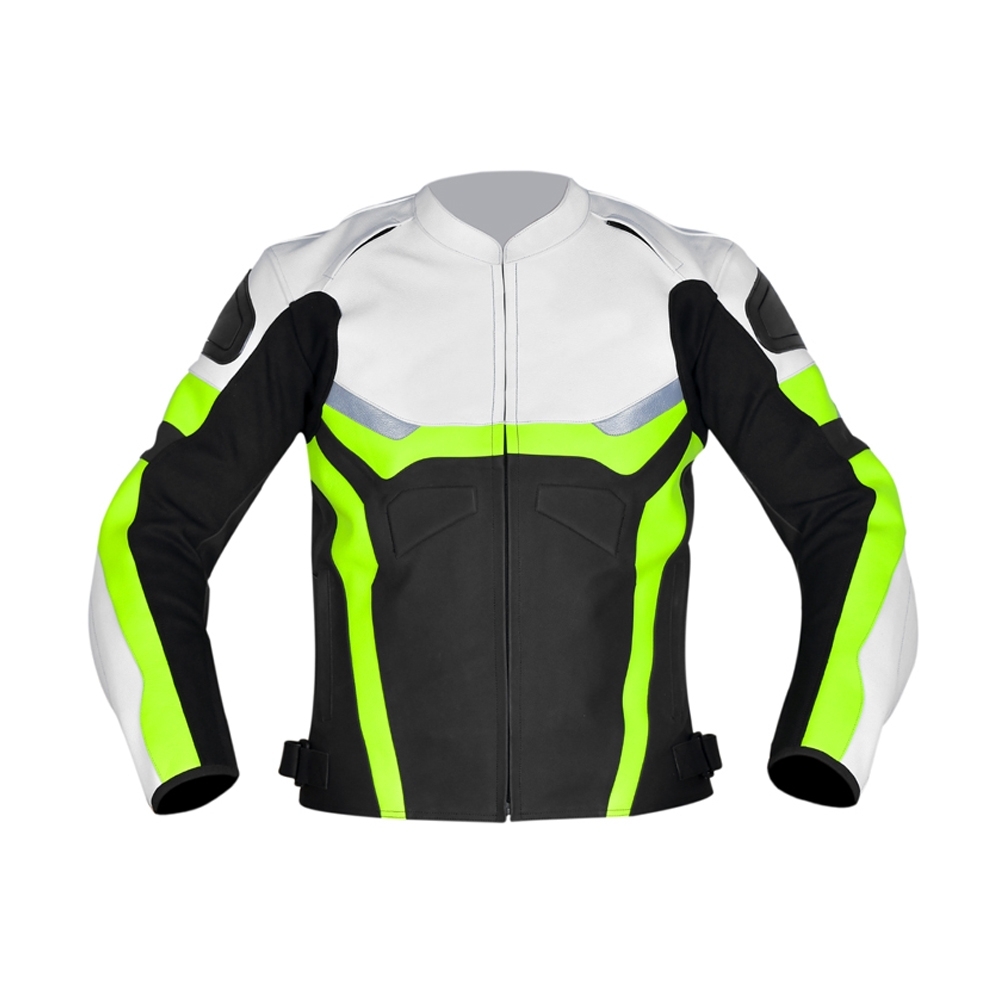 Material: Genuine leather or synthetic leather Color Options: Customize Color Closure: Zipper Extra Style: Inspired From Biker Style Lining: Polyester, Satin Pockets: Two Front-Side Pockets Sizing Options: Available All Sizes